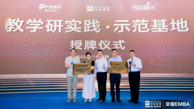 2022年7月18日,在第454期《濃縮EMBA》國際班現場,行動教育為浙江普林艾爾電器工業有限公司舉行了“教學研實踐·示范基地”授牌儀式。